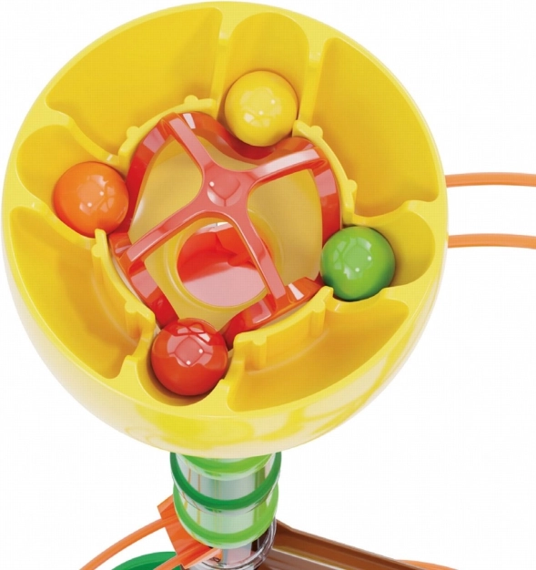 Dispozitivul de start permite eliberarea simultană a bilelor pentru a vedea care ajunge prima la finish. Ideal pentru joc competitiv și de echipă.