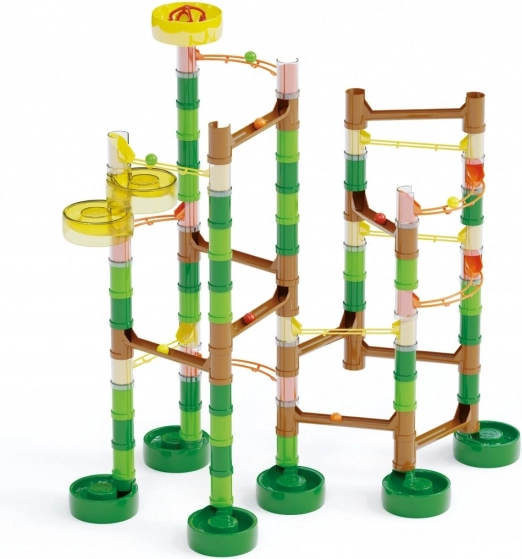 Descoperă aventura în junglă cu pista cu bile QUERCETTI Migoga Jungle! Datorită numeroaselor piese și construcției modulare, copiii își pot construi propriile trasee și pot urmări cum bilele alunecă pe rute diferite. Jocul dezvoltă motricitatea fină, creativitatea, imaginația spațială și gândirea logică și îi învață pe copii principiul cauză–efect. Materialele durabile asigură stabilitate și o durată de viață lungă.