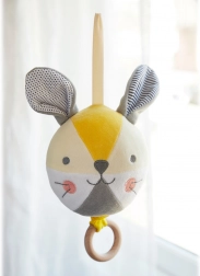 Mingiuța melodică în formă de iepuraș este concepută pentru a-l calma și distra pe cel mic. Este suficient să tragi ușor de inelul din lemn și va porni melodia delicată „You Are My Sunshine” pentru aproximativ două minute. Datorită suprafeței pufoase din bumbac organic, este ideală pentru îmbrățișat și pentru primele explorări tactile.