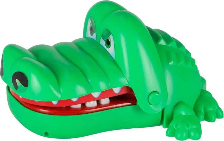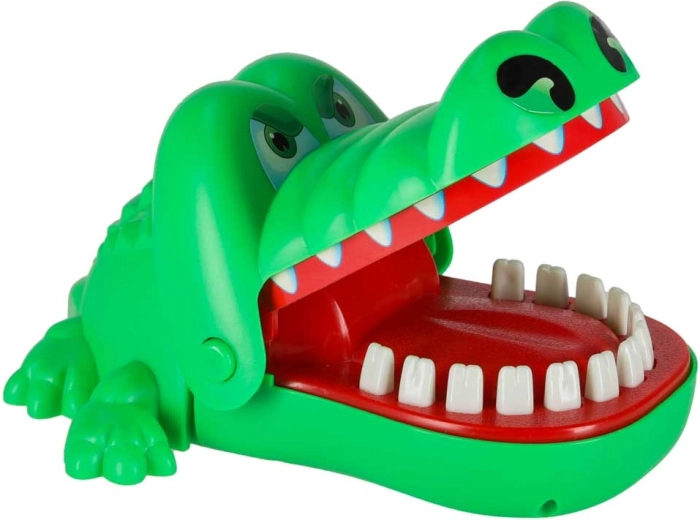 Jocul de îndemânare cu crocodilul este simplu, palpitant și captivant. Fiecare deschidere a fălcii stabilește aleator un dinte dureros, astfel încât nu știi niciodată când crocodilul va închide gura. Datorită dinților rotunjiți și siguri, jocul este potrivit și pentru copiii mai mici și dezvoltă excelent reflexele și răbdarea.