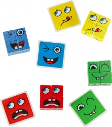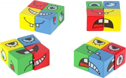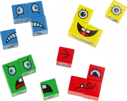 Cuburi fin șlefuite, imprimate cu ochi și guri, permit compunerea a zeci de expresii. Rezistente, sigure și plăcute la atingere.