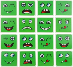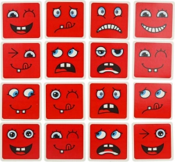 Trage o carte și compune cât mai repede fața identică. Ideal pentru seri în familie, grădinițe și dezvoltarea abilităților socio-emoționale.