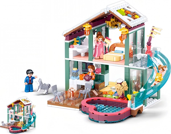- Detalii realiste la interior și exterior – dormitor, living, terasă, tobogan, jacuzzi