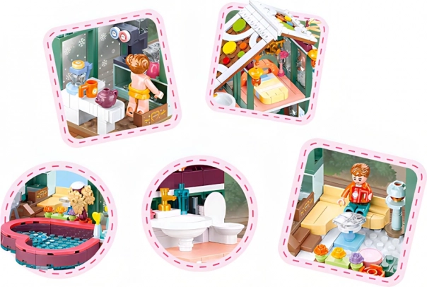 Construiți o cabană de iarnă primitoare și bucurați-vă de povești nesfârșite de iarnă. Căsuța pe două niveluri, cu dormitor, zonă de living și elemente exterioare precum tobogan sau jacuzzi, stimulează imaginația copiilor și jocul în comun. Sunt incluse 4 figurine detaliate cu părți rotative și basculante pentru scene și mai realiste.