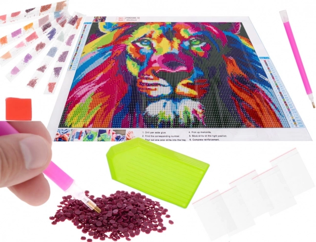 Mozaicul cu diamante 5D cu motivul leului curcubeu este alegerea ideală pentru momente de relaxare și pentru dezvoltarea motricității fine. Procesul nu necesită abilități speciale – urmezi codul de culori și aplici cu ușurință pietricelele pe pânza autoadezivă, observând cum imaginea se transformă într-o mozaică sclipitoare.