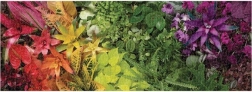 Design uluitor al unei grădini cu flori și frunze în nuanțe curcubeu oferă o capacitate decorativă frumoasă.