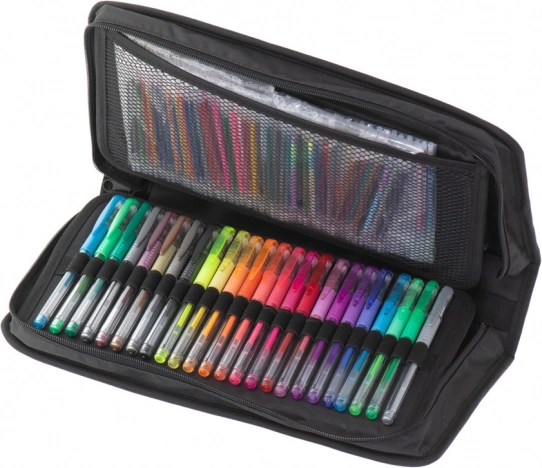 Setul mare de pixuri gel oferă posibilități nelimitate de creație. Datorită culorilor vii și rezistente, notițele și ilustrațiile tale vor fi mereu expresive și curate. Husa textilă cu fermoar menține totul organizat acasă, la școală sau în călătorii.
