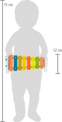 Acest xilofon din lemn, de înaltă calitate, este ideal ca introducere ludică în lumea muzicii și a ritmului. Lamele colorate îi ajută pe copii să diferențieze intuitiv sunetele și să compună primele cântecele, în timp ce baghetele solide din lemn masiv asigură lovituri confortabile și precise.