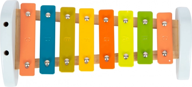 Fiecare lamelă metalică are propria culoare, astfel încât copiii pot asocia ușor sunetele cu culorile și pot învăța mai repede primele melodii.