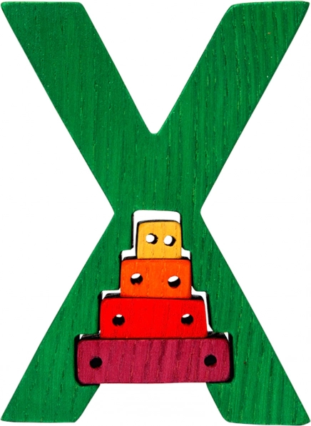 Puzzle-ul de inserție ajută copiii să își dezvolte abilitățile motorii și orientarea în forme. Literele învață copiii bazele alfabetului, fiecare parte potrivindu-se perfect la locul său în imagine. Fabricat din lemn masiv cu grosime de 2 cm cu un strat de vopsea sigur pentru copii.