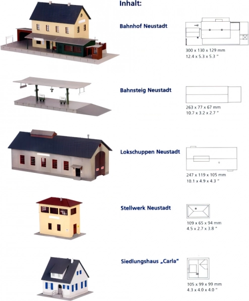 Setul complet de construcții pentru macheta feroviară vă permite să ridicați rapid o scenă autentică a stației Neustadt și a împrejurimilor ei. Schema de culori elaborată și piesele din plastic perfect potrivite asigură un aspect excelent și o montaj facil. Este inclus un ghid detaliat, astfel încât vă puteți concentra pe proiectarea peisajului și plasarea fiecărui element.