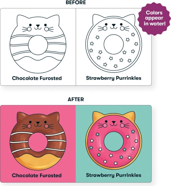 Baia va fi de acum o plăcere. Cărticica ingenioasă cu imagini se transformă după scufundarea în apă și activează culorile ascunse, care îi distrează pe cei mici și îi motivează să descopere. Este ușoară, moale și sigură pentru bebeluși.