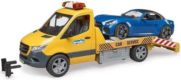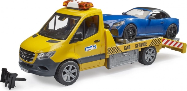 Camionul de remorcare BRUDER inspirat de MB Sprinter impresionează prin finisajele detaliate și dotările funcționale bogate. Copiii vor aprecia girofarul cu lumină și sunet, rampa cu șine extensibile și cale de blocare, precum și ușile și dulapurile laterale care se deschid. Setul include un cabriolet sport cu acoperiș detașabil și roți interschimbabile.