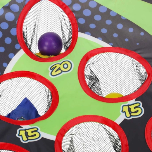 Ținta cu mai multe orificii marcate cu 5, 10, 15 și 20 de puncte îi motivează pe copii să-și îmbunătățească precizia și să-și creeze propriile reguli de competiție.