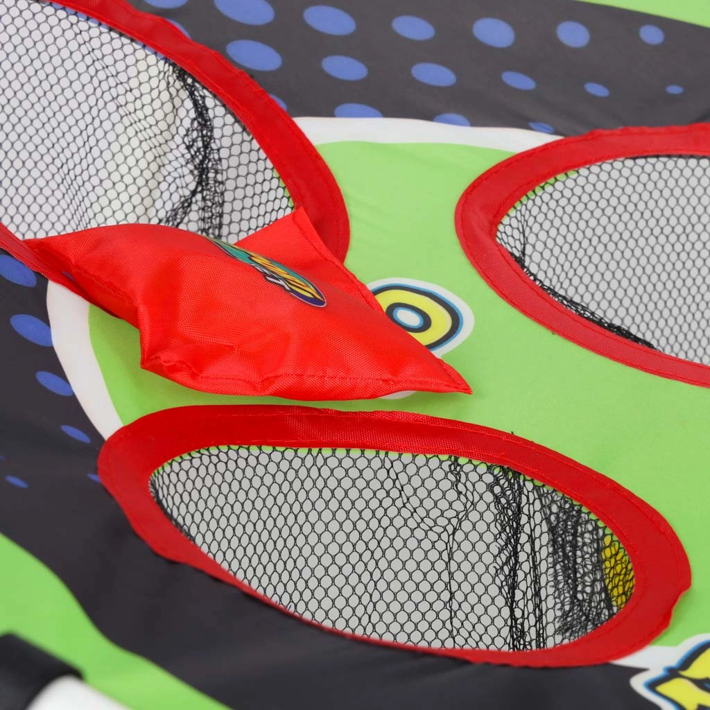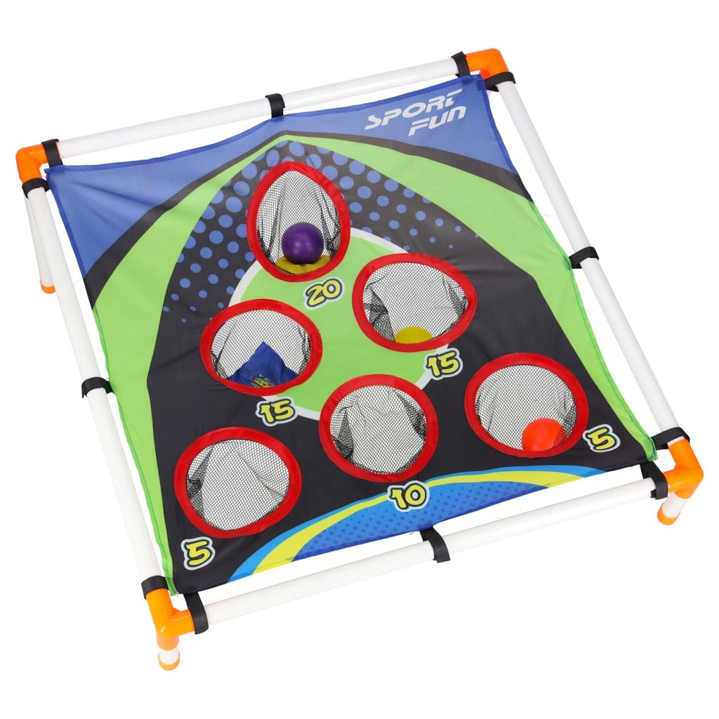 Joc distractiv de aruncare pentru copii, care dezvoltă coordonarea mână–ochi, precizia și reacțiile rapide. Cadrul ușor cu țintă înclinată și orificii numerotate oferă provocări variate de punctaj. Potrivit pentru grădină și interior, asamblare simplă și transport facil. Include atât săculeți pentru aruncat, cât și mingi din plastic.