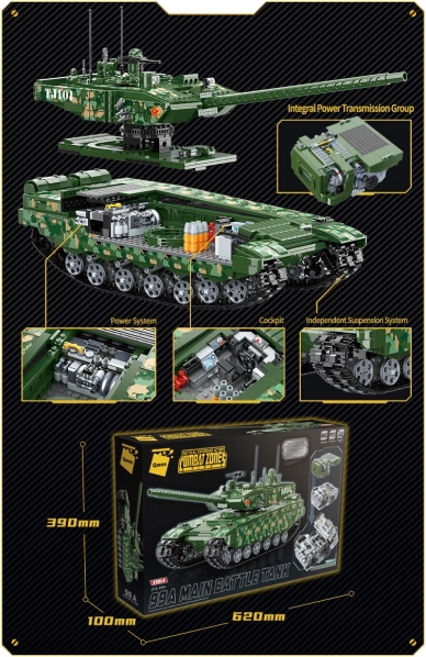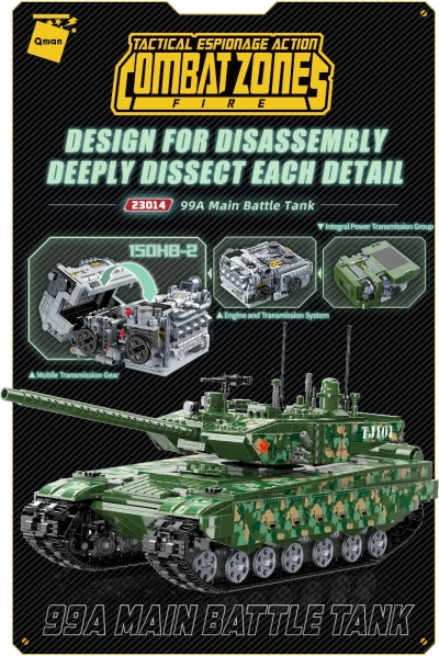 Construiește emblematicul tanc chinez 99A din 2.743 de piese și descoperă-i secretele datorită interiorului ușor accesibil, turelei complet rotative și șasiului cu suspensie independentă. Un element unic este marele model al unității de propulsie 150HB-2, care permite explorarea detaliilor de construcție. Setul Qman este compatibil cu alte mărci și fabricat din plastic ABS rezistent.