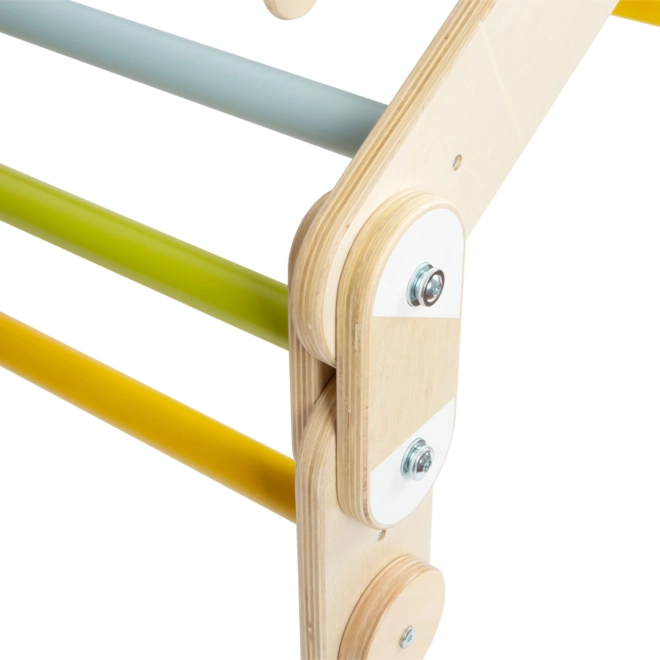 Această scară de cățărat este fabricată dintr-o combinație de placaj și lemn masiv de calitate, asigurând durabilitate și stabilitate. Datorită posibilității de decompoziție în mai multe forme, oferă oportunități largi de joacă și este de asemenea foarte compactă. Ideală pentru dezvoltarea echilibrului și a abilităților motorii ale copiilor, poate fi utilizată și în terapia fizică.
