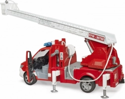 Scara este extensibilă și permite rotirea, în timp ce picioarele de stabilizare asigură siguranța în timpul jocului. Vehiculul dispune de un compartiment deschis care poate servi pentru depozitarea echipamentelor suplimentare de pompieri. Cabina este compatibilă cu figurinele din colecția BRUDER BWORLD.