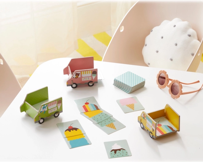 Include 52 de cartonașe ilustrate și 4 căruțe de înghețată care servesc ca suporturi pentru cartonașele colectate. Sarcina dumneavoastră este să creați un cornet de înghețată cât mai înalt, format din diverse cartonașe cu cornet, cupe și ornamente. Datorită cernelurilor netoxice și certificatului FSC, jocul este prietenos cu mediul înconjurător.