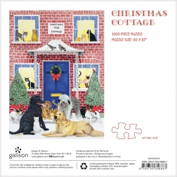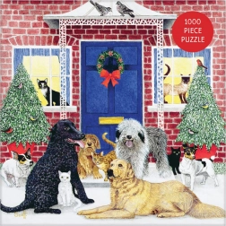 Descoperiți magia Crăciunului într-o scenă plină de câini, pisici și decorațiuni festive în fața unei căsuțe primitoare. Puzzle-ul cu 1000 de piese oferă bucuria asamblării atente, iar după finalizare creează o imagine superbă care încântă ochiul și inima.