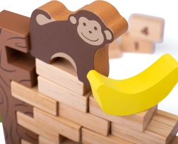 Descoperiți o jucărie inteligentă care îi distrează și îi învață pe copii. Jocul motric din lemn Jungla care cade combină împingerea palpitantă a pieselor cu adunarea amuzantă a punctelor. Scopul este să nu dărâmați zidul și, în același timp, să obțineți cât mai multe puncte din cărămizile numerotate. Designul natural din lemn și motivele jucăușe cu maimuțică și banană invită la joacă repetată.