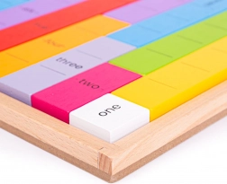 Această resursă didactică din lemn îmbină jocul cu învățarea – copiii pot „atinge” efectiv numerele, ceea ce îi ajută să înțeleagă mai profund semnificația lor. Tabela dezvoltă gândirea logică, percepția vizuală și motricitatea fină, în același timp încurajând descoperirea independentă a relațiilor și proporțiilor dintre numere.