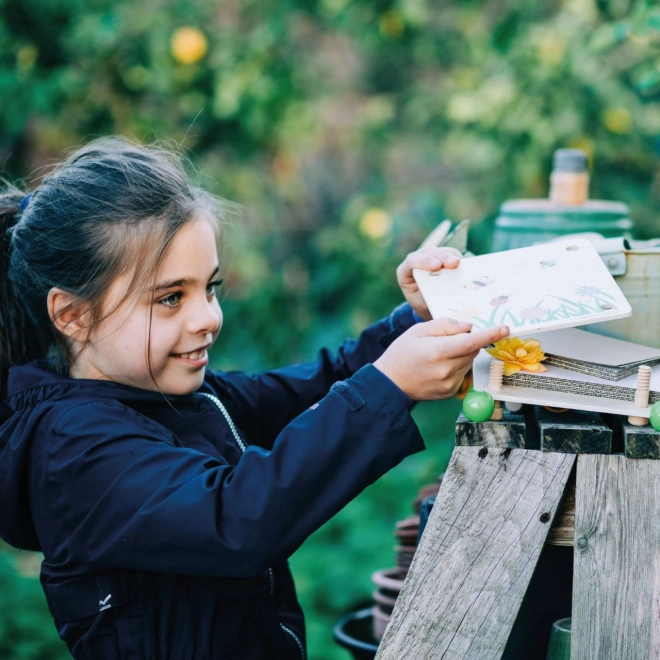 Această presă de flori din lemn este un instrument grozav atât pentru micii naturaliști, cât și pentru artiștii în devenire. Copiii pot presa florile preferate sau frunzele colorate și pot crea propriile ierbare, felicitări sau decorațiuni. Placa superioară este decorată cu o ilustrație veselă de grădină, iar piulițele verzi facilitează manipularea.