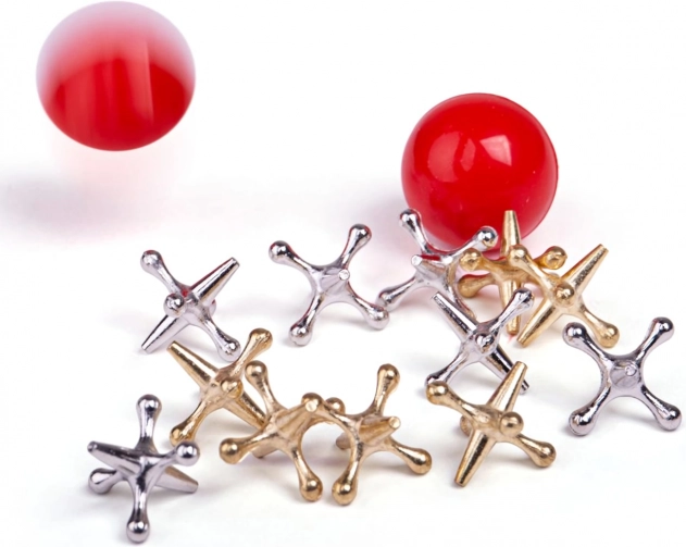Jocul cu piese Jacks reprezintă un joc străvechi, apreciat de cei mici pentru simplitatea și caracterul său distractiv. Jucătorii trebuie să arunce mingile de cauciuc în aer și, în scurtul timp până când mingea atinge din nou solul, să strângă cât mai multe piese metalice. Acest joc este ideal pentru dezvoltarea motricității fine și a concentrării.