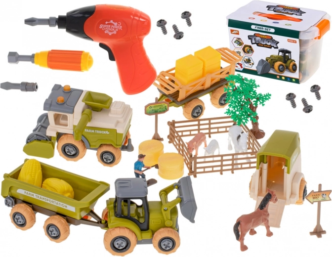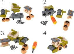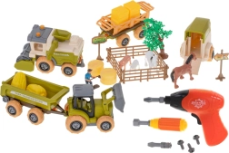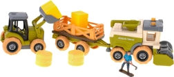 Tractorul, combina și remorcile pot fi ușor demontate și reasamblate cu ajutorul șurubelniței și al bormașinii cu acumulator. Copiii își exersează motricitatea fină și înțeleg principiile de bază ale construcției utilajelor.