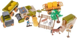 Descoperiți lumea agriculturii cu o fermă completă pentru copii, care îmbină jocul variat cu distracția educativă. Copiii pot demonta și reasambla tractorul, combina și remorcile folosind șurubelnița inclusă și bormașina cu acumulator, pot transporta fânul, îngriji caii, purcelușul și mielul și pot construi țarcuri. Totul este păstrat într-o cutie portabilă, durabilă, cu mâner, astfel încât ferma se strânge și se transportă cu ușurință.