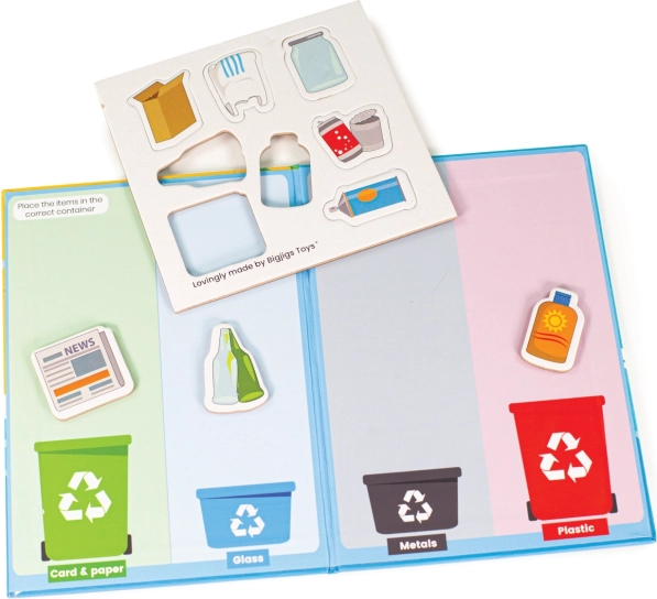 Plăcile magnetice cu închidere și elementele tematice îi conduc pe copii spre înțelegerea reciclării și protejării naturii. Jocul susține responsabilitatea și abilitățile practice.