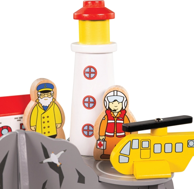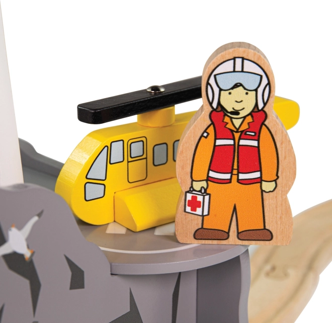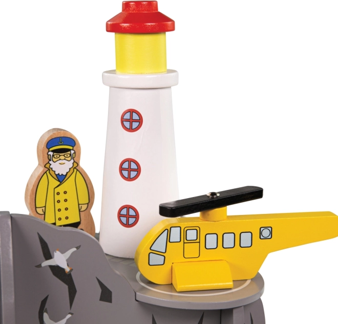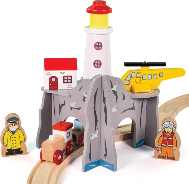 Îmbogățiți calea ferată de jucărie a copiilor cu un decor de coastă cu far și heliport. Acest set din lemn oferă un tunel cu patru ieșiri, un far, o elicopteră și 2 figurine pentru povești nesfârșite și misiuni de salvare. Se remarcă prin execuție robustă, este compatibil cu majoritatea căilor ferate din lemn și este fabricat din lemn obținut responsabil cu vopsele sigure.