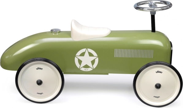 Vehiculul Vilac Vintage în culoarea khaki vă introduce în epoca elegantă a anilor '30. Caroseria sa metalică durabilă cu forme aerodinamice și detalii ale grilei frontale îi conferă un aspect unic. Poziția scaunului din plastic ferm, dar confortabil, poate fi ajustată pentru a oferi confort maxim copilului.