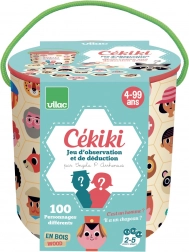 VILAC CÉKIKI este un joc alert de atenție și ghicitori, cu personaje originale create de ilustratoarea suedeză Ingela P. Arrhenius. Așezați pe masă piesele din lemn cu imagini și încercați două moduri de joc: fie ghiciți personajul secret punând întrebări istețe, fie căutați rapid imaginea identică cu cea de pe cartea întoarsă.