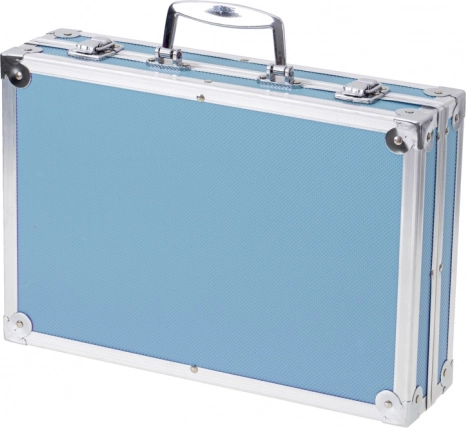 Valiză metal-plastic cu mâner solid și cleme de siguranță care păstrează totul în siguranță. Se transportă ușor la școală, la clubul de arte sau în vacanță.