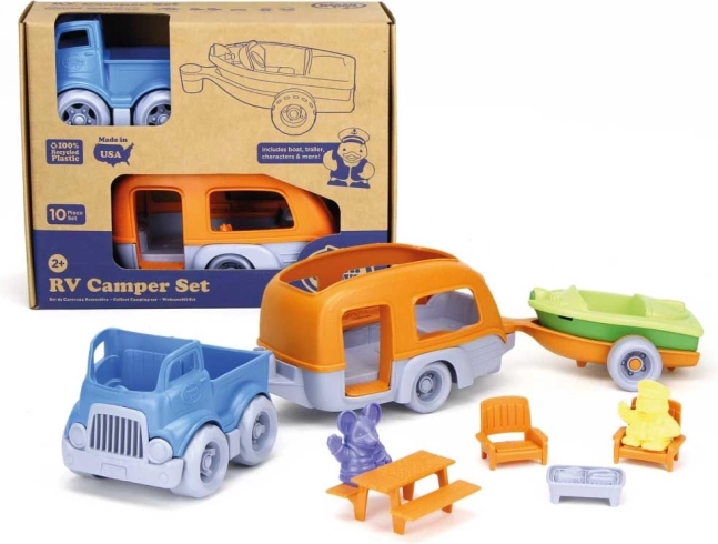Pick-up, rulota 5fi o barc3 cu motor 5fi remorc3.<30i>Dou3 figurine de animale, o mas3 de picnic 5fi un 033tor de camping.<30i>Joac3 sigur3 f3r3 componente metalice 5fi chimicale nocive precum BPA, ftala63i 5fi PVC.<30i>Potrivit pentru joac3 03n interior 5fi exterior.<30i><30ul>Juc3riile de la Green Toys reprezint3 un abordare ecologic3 3n produc63ie 5fi sunt populare 5n e2ntreaga lume pentru calitatea 5fi siguran3a lor. Ideal pentru joac3 at3t 03n nisipar, c3t 5fi eenape2nghe903 nat3 a tot de asemenea podea are sunt ideale pentru joaca at3t pe nisip, c3t 5fi en ape2.<30iv class='product-parameters'>