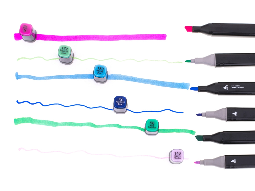 - Setul vine ambalat într-un etui estetic și convenabil, ușurând organizarea și păstrarea ordinii celor 48 de markere.