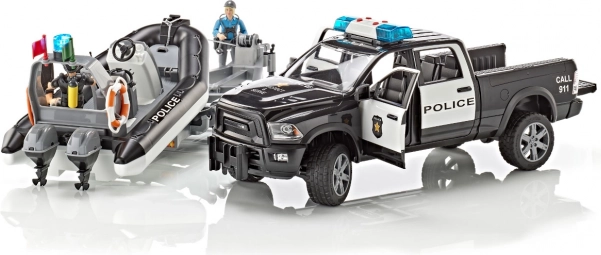 În pachet găsiți mașina de poliție RAM, remorca, barca cu accesorii și 2 figurine (polițistă și scafandru) – totul pregătit pentru o misiune imediată.