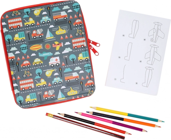 Acest set creativ portabil stimulează imaginația, motricitatea fină și răbdarea. Datorită ghidului clar, copiii învață cu ușurință și plăcere să deseneze diferite vehicule. Etuiul metalic cu fermoar păstrează toate accesoriile laolaltă și este ideal pentru excursii, în mașină sau în vacanță.
