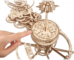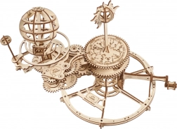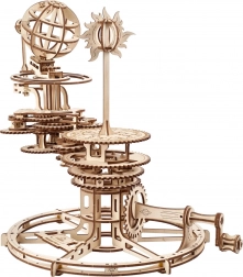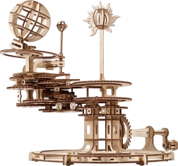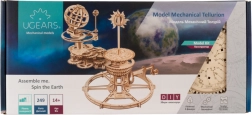 Tellurium UGEARS este un model mecanic 3D din lemn splendid, care aduce principiile sistemului copernican în mâinile tale. Cu o manivelă manuală pui în mișcare un ansamblu de angrenaje ce redă în raport precis rotația Pământului, orbita Lunii și mişcarea în jurul Soarelui, inclusiv înclinarea axei terestre și planul rotației Lunii.