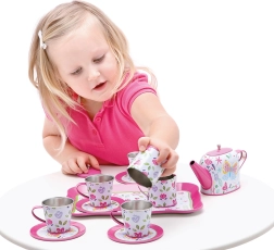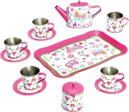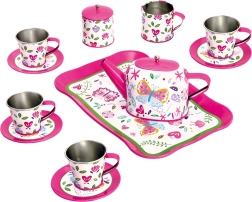 Acest încântător set de ceai pentru copii conține tot ce este necesar pentru organizarea unor petreceri de ceai. Setul, care include veselă pentru 4 persoane, permite copiilor să își dezvolte abilitățile sociale și fantezia. Execuția metalică asigură rezistență și durată de viață îndelungată, în timp ce modelele colorate atrag privirea fiecărui mic invitat.