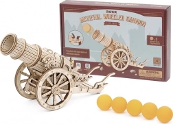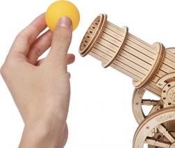Modelul oferă un mecanism de tragere manual, cu trăgaci și posibilitatea de alegere a unghiului de lansare. Țeava este adaptată pentru a trage cu mingi obișnuite de ping-pong, așadar după asamblare te bucuri nu doar de un model frumos, ci și de distracție dinamică. Datorită roților mari, tunul se deplasează ușor și poți ajusta „câmpul de luptă” după nevoie.
