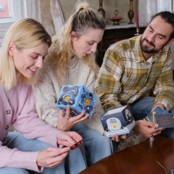Transformă oferirea cadoului într-o experiență de neuitat. Cutia misterioasă ESCAPEWELT este o asamblare stilată pe care, după montaj, o încuieți cu un cod din trei cifre și pregătiți pentru destinatar o serie de piste logice pe patru carduri. Datorită autocolantelor colorate, simbolurilor și indiciilor direcționale, stabilești singur dificultatea și atmosfera enigmei.