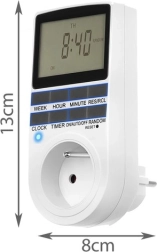 Cronometrul digital este util în orice gospodărie, birou sau magazin. Permite controlul timpului de funcționare a aparatelor și este echipat cu 8 butoane și reset pentru programare ușoară. Datorită afișajului lizibil, setați ușor ora curentă și programul.