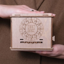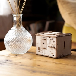 Fabricat din lemn de mesteacăn, acest puzzle combină frumusețea naturală cu precizia mecanică. Construcția stilată asigură durabilitate îndelungată și atractivitate estetică.