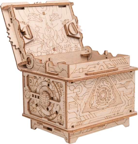 Devino căpitanul misiunii către planeta Elysia și descifrează combinațiile de litere și cifre care deblochează secvența de aterizare. Cutia orbitală din lemn se remarcă prin gravură detaliată, mecanism bine gândit și un compartiment secret pentru a depozita un mic cadou sau indicii. Fiecare pachet conține un ghid ilustrat și un cod QR cu ajutor, astfel încât atât începătorii, cât și celor experimentați să se poată bucura de joc.