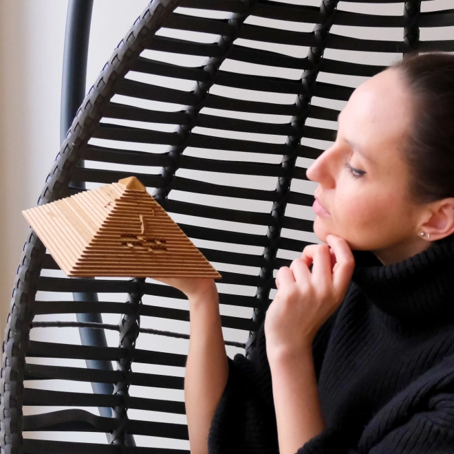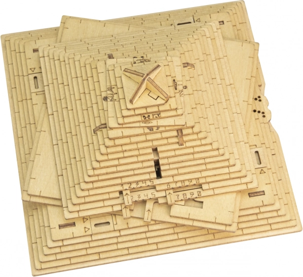 Puzzle-ul piramidal este accesoriul perfect pentru toți iubitorii de jocuri de evadare. Acest joc detaliat oferă nu doar sarcini logice fascinante, ci și o atmosferă istorică. Fabricat din lemn european de calitate, puzzle-ul vă va duce în adâncurile piramidelor egiptene, unde trebuie să depășiți o serie de capcane inteligent concepute.