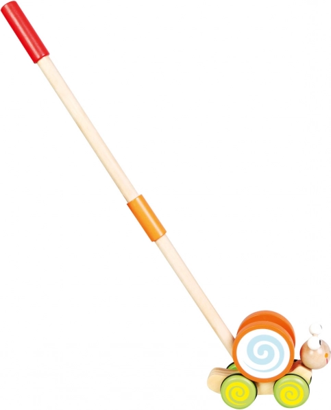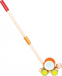 Jucărie din lemn de înaltă calitate, îndrăgită, în design de melc. Jucăria pe care copilul o poate împinge în față ajută la dezvoltarea abilităților motorii. Copiii învață de asemenea în acest mod să deosebească culorile și animalele. Plimbărețul are roți cauciucate pentru o funcționare silențioasă. Copiii îl pot împinge sau trage atât în casă, cât și afară. Un cadou minunat pentru copilul dumneavoastră. Principalele caracteristici: sprijină copilul în primii pași, amuzant și drăgălaș, dezvoltă abilitățile motorii