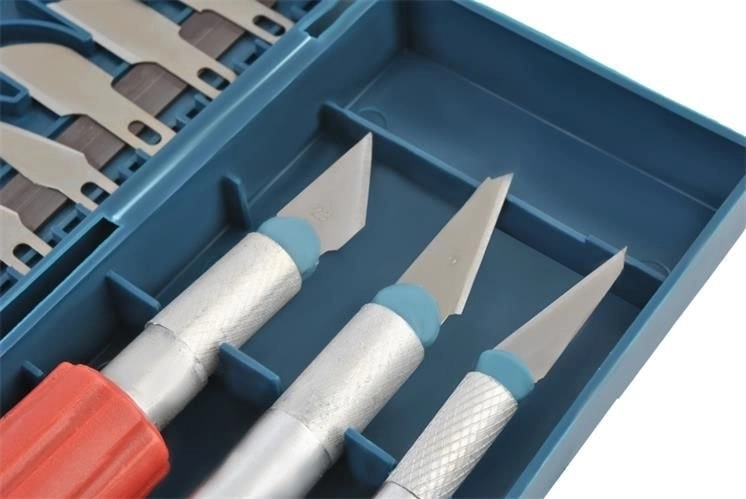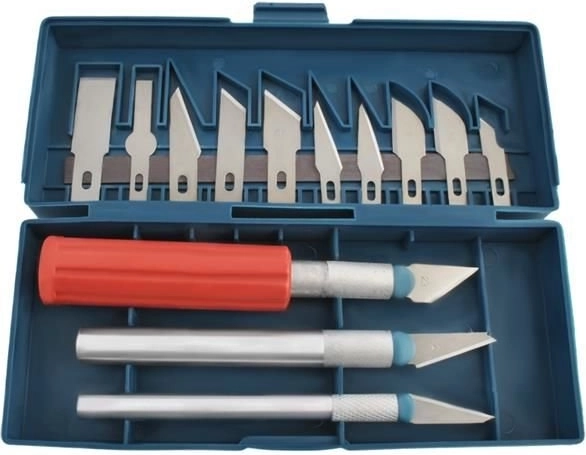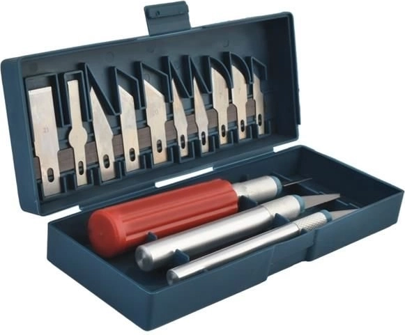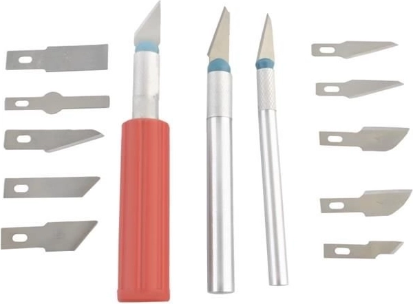 CUTELE INTERSCHIMBABILE - setul conține până la 13 lame interschimbabile de dimensiuni și forme diferite, făcându-le ideale pentru diverse lucrări delicate, inclusiv cele mai precise, la modelare, decoupage, scrapbooking și alte meșteșuguri.