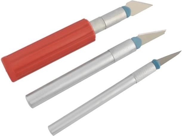 3 MÂNERE DIFERITE - confortabile și sigure în mână, cu capace de plastic, proiectate special pentru lucrări artizanale fine. Schimbarea vârfurilor pe mâner este rapidă și fără probleme.